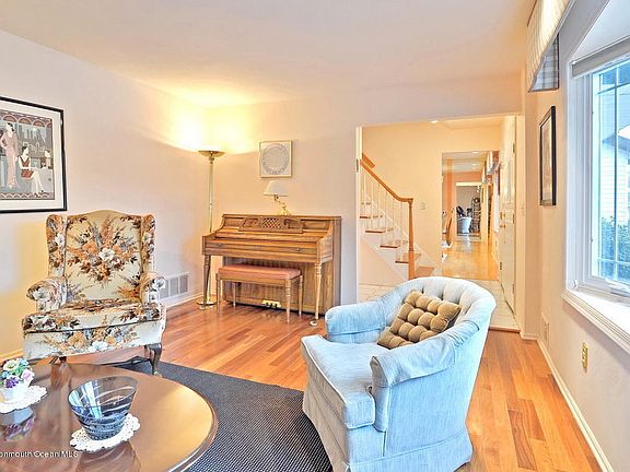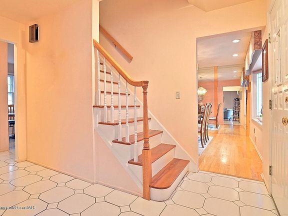 Warm & Inviting 5BR, 2.5 Bath Center Hall Colonial in Desirable Merritt Estates. Double Door Entry, Hardwood Floors & Recessed Lighting, Newer Kitchen w/Corian Counters, Glass Backsplash & Brazilian Cherry Cabinets. Full Finished Basement & 2 Story Great Room w/Wood-burning Fireplace, Skylites & French Doors to your Private Yard featuring a large Timber tech Deck, Grill area and lighting. All this Backing to Green Acres and Minutes to NYC Transportation.
