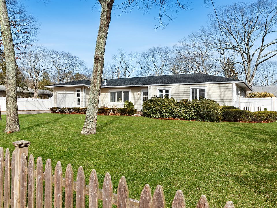 This single-level shingle traditional has just been completely renovated and improved to it's current incarnation. Now this home features a new open flow floor plan perfect for today's living and entertaining lifestyle. The front entrance brings you in to the spacious great room with fireplace, dining area and sleek modern chef's kitchen with stainless steel appliances. All new windows and doors provide abundance of natural light throughout the day. On this floor is the master suite which includes the huge walk-in closet and a stylish spa-like bathroom and access outside. There are 2 additional bedrooms, home office or den and another beautiful bathroom. The attached garage is a perfect convenience too. All opening up to the large new deck facing the rear yard. The improvement continues to the newly finished lower level that has a large entertainment room, wet bar, bedroom, gym full bathroom and laundry room. There is and additional entrance/exit to the front yard as well. This special home is situated in the very desirable south of Fanning Avenue and east of Ponquoque Road district of Hampton Bays. Close to all the village shops, restaurants, local schools, and community resources and the coveted ocean beaches. The oversized, cleared yard provides the perfect setting for a future pool and accessory buildings.