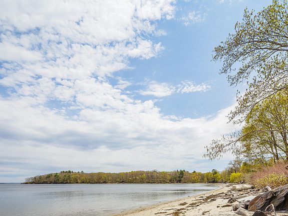 Front and rear lawnsSandy shoresClassic architectureTwo story colonialWooden walkwayPaved parking