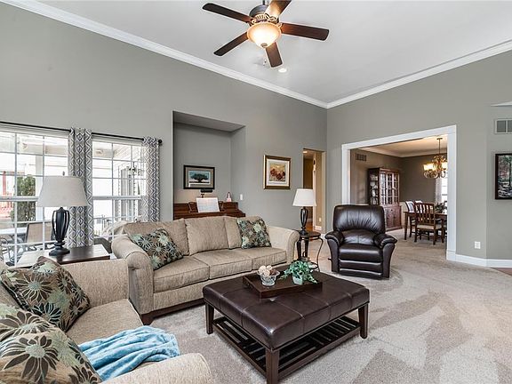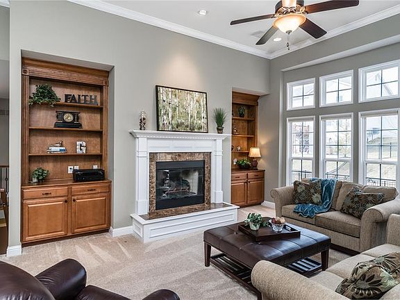 ** 4 Waterfront Grove ** DON'T WAIT to visit this magnificent Ranch Home in Talbridge! It has EVERYTHING! Private street, 12’ Ceilings, Built In Speakers, Media/Movie Room, Outdoor Space, Game Room, Bar & 5 Bedrooms! COULD BE 6! Hardwood floors in the entry & kitchen open up to inviting rooms w/ a Gas Log Fireplace, Wall of Windows & Custom Built In Shelving! Kitchen is BIG & has granite counters w/ 42” tall cabinets & pull out shelving! Lg Walk-In Pantry, Roomy Main Floor Laundry Room. Main level houses 3 nicely sized bedrooms plus a great Master Suite w/ Walk In Closet! STUNNING Lower Level is a family dream! Multiple Game Areas, FULL MOVIE ROOM, BAR, WALL OF HD TV HOOKUPS (for 3 TVs), ELECTRIC FIREPLACE, BEDROOM, FULL BATH & Extra Space for Workouts or an Extra Bedroom! Irrigation System & 3 Car Garage! This lot overlooks the common ground pond & fountain! Prime proximity to shopping & hwy access! 4 Waterfront Grove, in Talbridge!