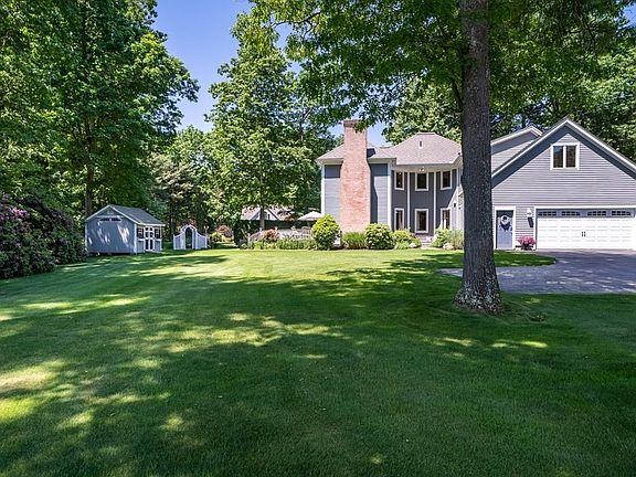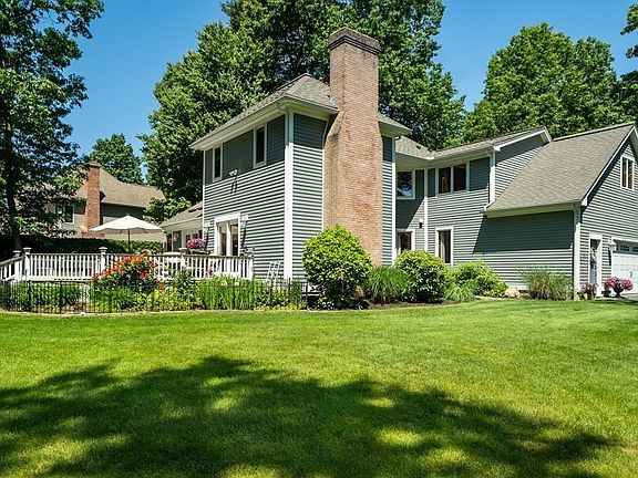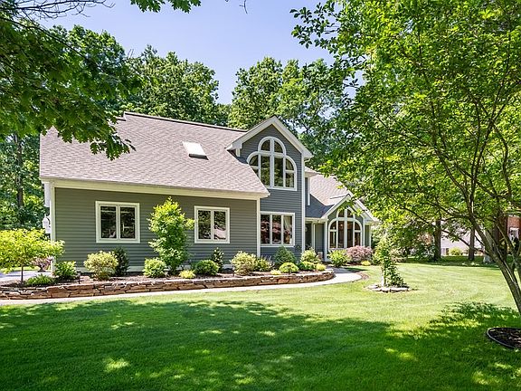 Welcome home to this beautiful Contemporary in highly sought after neighborhood, stunning park like grounds w/custom landscaping, sprinkler system, storage shed on a cul de sac street. Enter into the 2 story foyer, step down to living rm w/vaulted ceilings and gorgeous custom windows, formal dining room, Kitchen w/granite countertops & tile backslash, 2 tier island, dining area, vaulted ceilings w/skylights allows the sun to pour in and opens to family room w/gas fireplace. Atrium doors lead to the spacious back deck. First floor office and laundry room. Second floor offers generous master suite w/fireplace, walk-in closet, and full bath w/double sinks, jacuzzi tub and skylight. Additional full bath and 2 additional bedrooms including one with a tandem room perfect for nursery, play room, dressing room etc. Partially finished lower level w/custom built-ins. Features also include security system, central vac, New furnace (2021 APO) and new AC (2021 APO), 2 car garage. This wont last!