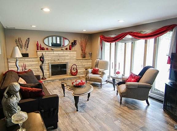 Custom home on quiet cul-de-sac/new doors/trim/ceramic wood plank flooring/1st floor/hard wood flrs/2nd floor. 1st flr: open concept w/LR w/fpl, lg DR open to fam rm w/vaulted ceilings &/fpl, w/sliding glass doors to backyard oasis. The lg kitchen w/lots of granite counter space/granite bar height table/stainless appliances/kegerator. Full bath w/jacuzzi tub & separate shower. 4th bdrm/office w/.5 bath and door to outside deck. 2nd fl: Mstr bdrm, wic, master bth, custom shower/dual sinks/granite. 2 more bdrms both w/wic, and full bth in hall. Partial fin. basement/lndry rm/well-equipped gym/storage. Pool/hot tub/block walls/paver patios/storage shed/2-car gar/paver driveway. 2 zone c/a, 5 zone heat, great neighborhood, great schools, walking trails steps away, close to hwys/shopping. Appliances/outdoor furniture/pool supplies included. Low Riverdale taxes. Furniture and home items negotiable.