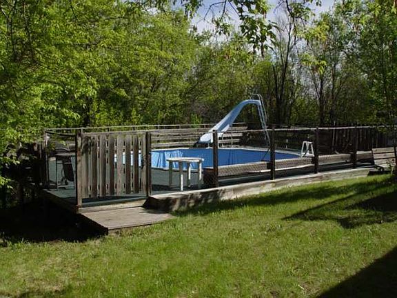 Cabin at West Acres, Pick City, 2 BD, 1 Bath. Includes heated swimming pool with surrounding deck, pool shed, boat dock and permit included also paddle boat.