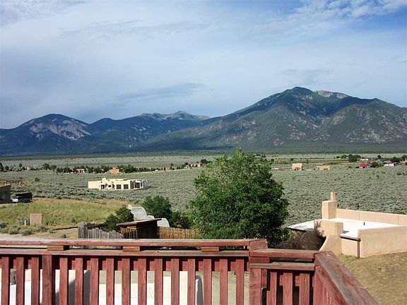 A lovely 4 bedroom, three bath home, great views. Upper viewing deck with 360 degree views! Easy drive to Taos Ski Valley, Town of Taos, and Rio Grande del Norte. Kiva fireplace, radiant floor natural gas heat,