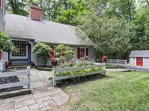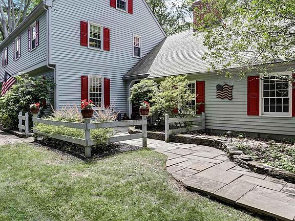 Authentically reproduced Salt Box Colonial designed by William Thompson.Expanded in 2006 with an open floor plan, Gourmet kitchen has a commercial grade, DCS stainless steel cooktop/grill, Sub Zero, Bosch DW, expansive granite island and counters, walk-in pantry, wine refrigerator, wet bar and floor to ceiling window views of park like back yard.17x17 dining room has coffered ceiling and window seat.Two impressive fireplaces inside, including a massive wood burning Williamsburg Colonial style hearth in the family room. The exterior features a 1300 sq.ft.blue stone patio with a hand crafted natural stone fire pit and grill island with back splash and DCS stainless steel grill.Lot is adjacent to 10 acres of green space, Brand new septic system (1/16) and Master Bathroom (5/16)