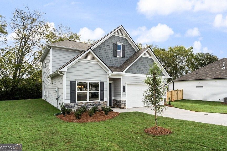Move in Ready! The Caldwell plan, by Smith Douglas Homes, is a great choice for those desiring a first floor owner's suite. The hub of this home is the centrally located family room that open's to the kitchen that has access to a rear covered porch. Kitchen features gas cooking, tile backsplash, granite countertops, upgraded cabinetry and more! Single-level living can easily be achieved within this popular plan because everything is just steps away! The adjacent family room has a warm and inviting fireplace. Addtional windows have been added throughout the home adding to the natural light while the addition of Vinyl Plank flooring provides a seamless transition from room to room through all the main living areas. The separate dining room is ideal for more formal entertaining. A flexible second floor provides a full bath and two additional bedrooms with a loft. Both floors have 9ft ceiling heights Level homesite on a cul-de-sac. Located in the Jackson Farm - a swim community!!!Photos of actual home. Seller incentives with the use of our preferred lenders.