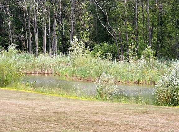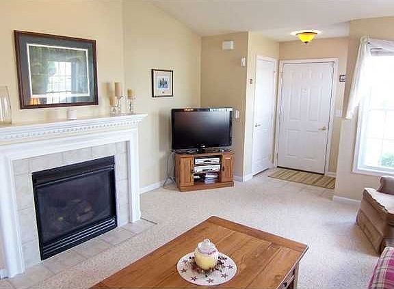 Prime pond-view end unit at Parkside Townhomes! Immaculate open floor plan with cathedral ceilings, lots of windows, and patio overlooking pond and "forever wild" woods. Desirable floor plan with large bright great room open to kitchen. Two bedrooms on first floor for one floor living. Upstairs is a third bedroom, currently used as a large family room, and rough bath with tub and plumbing (currently used as an exercise room). Also a large storage room. Only five years new, and well kept and maintained. One of the best lots in the development!! Won't last.