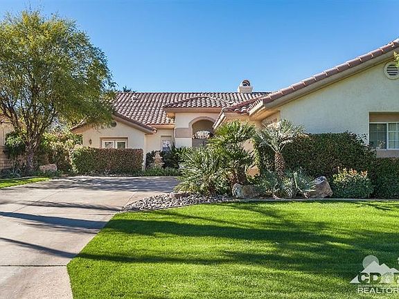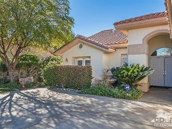 Rare opportunity to own a home in the hidden treasure of White Sun Estates, centrally located in the heart of Rancho Mirage. The 2,407 SF open concept floor features a spacious cook's kitchen that opens to the dining area, great room and fireplace. There are two master suites with walk-in closets and a third bedroom is casita style with separate entrance-ideal for guests or home office. Other features include high ceilings, wet bar, large diagonally laid ceramic tile, beautiful gardens, and three-car garage. White Sun Estates is a gated community with 52 homes and low HOA fees. Ideal for year-round living or a second home. See the virtual tour.