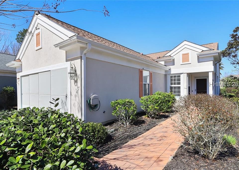 Pristine Heather model on large private lot with peaceful lagoon/forever green view. Fabulous upgrades inside and out! Granite counters, oversized double pantry, gas stove and plantation shutters customize the kitchen. Master bedroom has a bay window with plantation shutters,upgraded carpet,and oversize custom walk-in closet. Bedroom 2 has built in desk, murphy bed and custom closets. Wood floors in BR 2/3. Carolina room! Private screened porch. Extended garage with brickpavers that extend the driveway and enhance the walkway. All new: Roof,HVAC,Reverse Osmosis System. Clean stucco report. All this AND at the end of a private cul-de-sac!