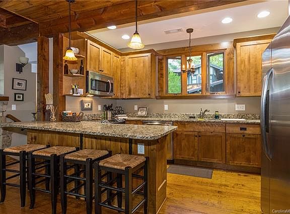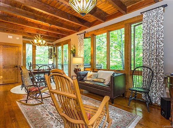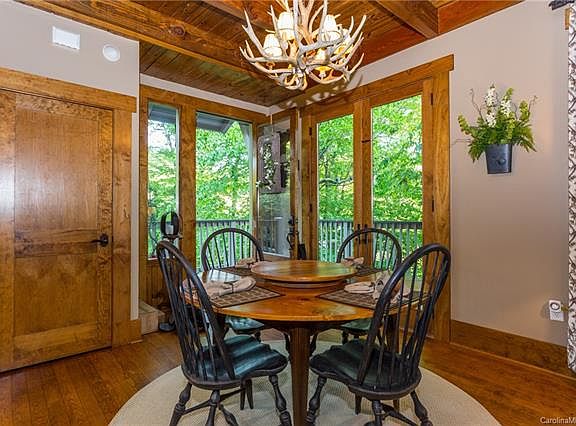 Dogwood Treehouse is the perfect getaway located in picturesque Cheshire Village in Black Mountain. Sit by the open fire on the veranda to enjoy the sunset and privacy. This uniquely designed home is within close proximity to the fitness center, tennis club and local restaurants. Take advantage of the trails and open park-like setting. The main floor living area is completely open to the living room, kitchen and dining area, with many windows offering much sunlight. French doors provide access to patios for outdoor enjoyment. The master bedroom is located on the top floor with ample space for a king size bed and has a large private bathroom with Jacuzzi tub and shower. The second bedroom is located on the lower level with a full bath and access to a private patio area. This is the perfect vacation home or investment for vacation rentals. Strong rental history with solid return on investment that can be furnished upon request.