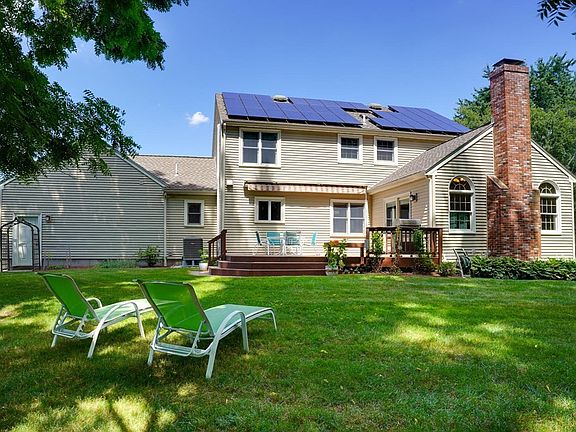 Welcome to this gracious open concept colonial situated in coveted Walnut Hill on a double cul de sac street. The 1st floor features a beautifully updated kitchen with high end stainless steel appliances. The kitchen opens up to the family room with cathedral ceiling, a fireplace and access to a large deck with sun awning-perfect for entertaining. Nicely sized dining room and living room with hardwood floors round out the 1st floor. The 2nd floor features a master bedroom with updated en-suite bathroom. An additional 3 bedrooms and updated bath complete the 2nd floor. Finished basement with full bathroom and garage access. Professionally landscaped yard with separately metered irrigation system and shed. Meticulously maintained home. Newer roof 2008 and solar panels 2011 (owned), new furnace 2014 and hot water tank 2012, new AC 2019, new windows, and fresh paint throughout. Close to commuter routes, commuter rail and all that Natick has to offer. Offers due Mon. 8/17 4:00pm