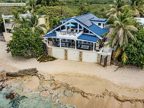 LUXURIOUS WATERFRONT OASIS! Experience the best of island living with this high-end 3-bedroom, 3.5-bath waterfront retreat. Located on one of the most beautiful beaches in St. Croix and fully renovated in 2021/2022. Perfect for swimming, diving, and snorkeling, this solar-powered home features elegant finishes, natural coral and wood details, and breathtaking ocean views. Relax on the expansive beachside patio, take in stunning sunsets from the private second-floor deck, or enjoy al fresco dining steps from the water. The house is immaculately maintained and the tropical landscaping adds beauty and privacy. Within walking distance to Rhythms at Rainbow Beach and close to the town of Frederiksted with historic charm and restaurants, this home is a perfect blend of luxury and island living Imagine waking up to the soothing sound of waves and stepping onto your private stretch of pristine sandthis is the reality at this extraordinary beachfront retreat in St. Croix. A true embodiment of island elegance, this home is designed to blend effortlessly with its breathtaking surroundings, offering uninterrupted ocean views and a seamless connection between indoor and outdoor living.