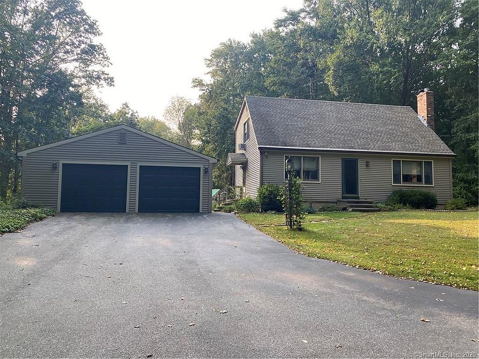 Not your average cape!! Privately set back from the street on a quiet cul-de-sac. Surrounded by nature, yet still close to amenities. Gleaming hardwood floors throughout. This home provides the option for one level living; bedroom & full bath complete with laundry set up on the main floor. Living room hosts a fireplace to enjoy during chilly weather. Adorable eat-in kitchen, plus formal dining room. Upstairs you'll find two more spacious bedrooms, complete with large closets, & another generously sized full bathroom. This home does not disappoint when it comes to storage space! 2 car detached garage provides space for even more storage, a workshop, or to simply keep your cars cozy during the winter! Pride of ownership shines throughout this home. Perfect yard for gardening or just to run around and play! Save time in your schedule to book a showing!!