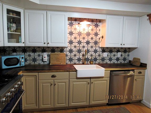 End Unit on the Pond, water view. Unit has been completely remodeled. Kitchen boasts gas Gorman stove, farmers sink, cement tile backsplash and butcher block counters. Dining room has cathedral ceilings and hardwood floors. There are 2 bdrms with large closets, both w/ brand new carpets. 2 full bathrooms, upstairs bthrm has new tile, new Mexican sink with a walnut counter, bead board and glass door enclosure on the tub/shower. The downstairs bathroom has also been remodeled with new toilet, tub/shower with tile surround and a beautiful herring bone tile floor. Downstairs family room has built-in's, a new hickory vinyl plank floor and walks out to the patio overlooking the pond. There is also a loft upstairs used as a sitting room/office. All major components have also been updated. Heating system is a Terrain high efficiency and is 3 years old. Water tank is 6 years old. Enjoy everything being already updated: appliances, sinks, flooring, bathrooms and heating/water tank