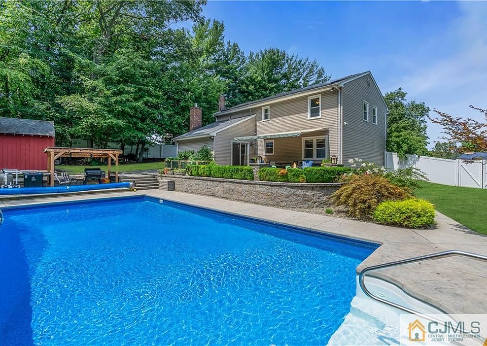 JUST LISTED, this is the home you've been waiting for! Please welcome 4 Windflower Lane to the summer market! Nestled onto a cul-de-sac, this colonial property offers 4 bedrooms, 2.5 bathrooms, 1 car garage, tons of storage and too many updates to mention. Highlights include the inground pool that was completely redone in 2016, from the infrastructure to the liner, plumbing, filter, heater and slab around...NEW GAF Roof 2023, liner in the flue pipe for the hot water heater 2019, hardwood floors throughout, whole house generator 2017, primary ensuite with a refreshed primary bathroom 2016, refreshed hall bathroom 2024...refreshed kitchen in 2015 with upgraded SS appliance package, granite countertops + breakfast bar and custom cabinetry...gas insert fireplace, professional landscaping...custom paver patio + fire pit, retractable awning...backyard is perfect for all your entertaining needs! Proximity to Routes 35 & 36, the Garden State Parkway and 6 minutes to the Hazlet Train Station. A MUST SEE.
