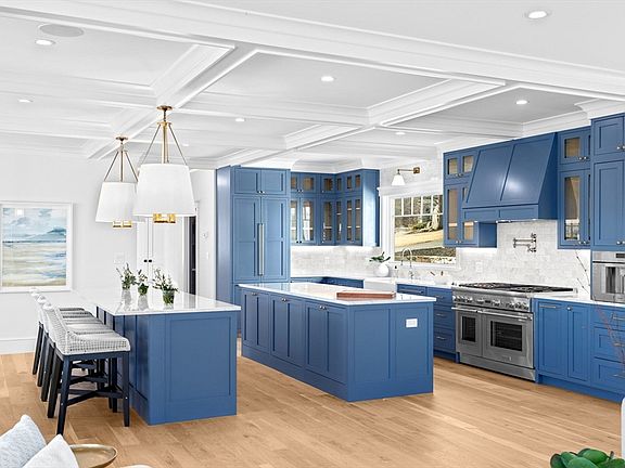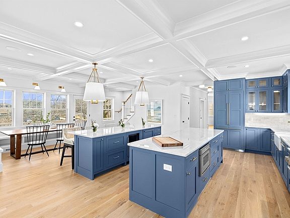 Set in the sought-after Windy Hill neighborhood with stunning views of Straits Pond and the Atlantic, this newly built 5+ bedroom home is just moments from the beach. Designed for both entertaining and everyday luxury, the chef’s kitchen features double islands, a professional gas range, built-in espresso machine, breakfast bar, and walk-in pantry. The primary suite offers a private balcony, dressing room, and a spa-like bath with Carrara marble, dual vanities, soaking tub, and steam shower with built-in TV and sound system. The second floor includes additional bedrooms, a lounge, and a full laundry room. Meticulously landscaped with handcrafted stone walls, bluestone patio, irrigation, and lighting, the property is as stunning outside as in. The lower level offers potential for a media room, gym, or office. A rare opportunity to own a thoughtfully crafted coastal retreat!