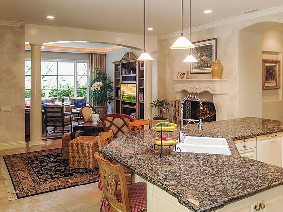 - Recessed Lighting, Beamed Ceilings, Granite Counters, Open Floorplan, Built-in Features, Crown Molding, High Ceilings