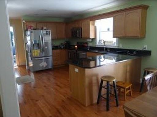 Private cul-de-sac setting, three bedrooms, 2.5 baths, Exeter School District. 2070 sq.ft. of living space, kitchen with granite counters & maple cabinets, stainless appliances, with a first floor laundry, 2 car under, hardwood and tile flooring, central air, 3rd floor walkup, all ready to be finished, beautiful farmers porch, wooded setting abuts conservation land. Inground, heated, gunite salt water pool recently installed.