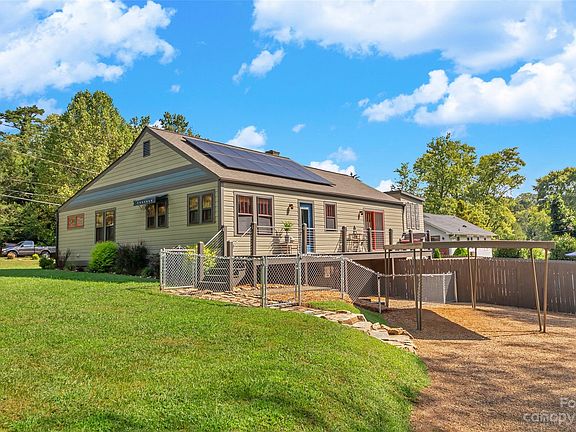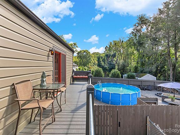 Rare opportunity to buy TWO homes on outskirts of E. Asheville on terraced corner lot with mountain views sunrise to sunset. This property includes both a 4 BR/2BA main house and income producing brand new state-of-the art tiny home. The main house is drenched in charm, featuring German wood siding, stained glass windows, contemporary deck rail system, hardwood floors, and private master suite with french doors. Large unfinished basement w/ extensive opportunities for storage & development of living space. Relax on your back deck overlooking your private retreat featuring raised gardens, covered dining, fire pit, outdoor shower & above ground saltwater pool, while taking in mountains views and watching horses graze below The Blue Ridge Parkway. Ample parking for both homes w/ 2 separate driveways. Ultra contemporary tiny home completed in '22 has all the amenities you need: 8' living room, kitchen, laundry, bathroom and full staircase up to a full size bedroom w/ 8' ceiling.