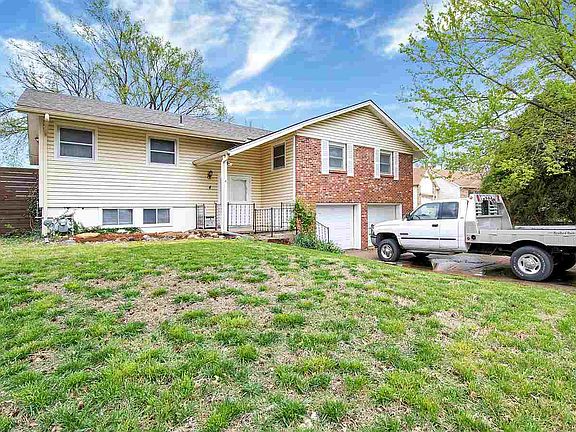 Calling sports fans or those who like having multiple living areas. Introducing this 4 bedroom 2.5 bath and 2 car garage. This house will appease the cooks in the house with a large kitchen and spacious deck for grilling. Upper living room perfect for anyone who wants to relax and opt out of the sports. The space down stairs features a large family room where you entertain many friends. Tons of storage space in this home and so many possibilities. The spacious master bedroom has a private en-suite bathroom. Newer on demand water heater. Situated on cul-de-sac within walking distance of a fishing pond, jogging trail and park. Sunrises and sunsets are very enjoyable in this home. Minutes from Wichita and out of the city noise!