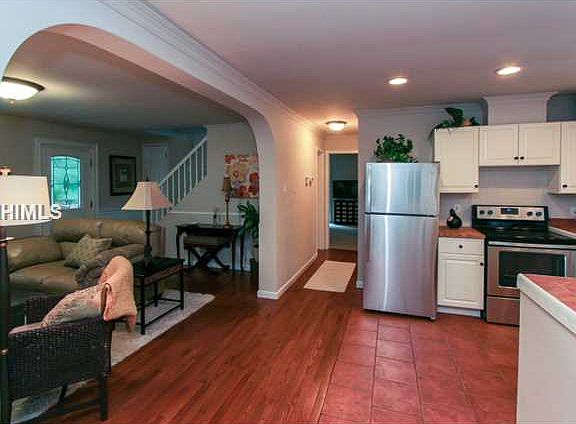 Opportunity Knocks! Low Country home sits on a large lot in a quiet private neighborhood just over the HHI bridge. Wonderfully renovated and ready to move-in, this family home has 3 bedrooms, 2.5 baths. First floor master, open kitchen to living room, room for a garage, pool, garden- whatever you want. New roof 2011, new HVAC 2014, new hot water heater 2012 and new carpet. Deep water access to the Colleton River at the end of the street. (ZT)
