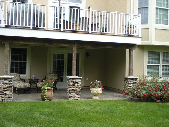 A beautiful Butterfly and Hummingbird Garden greets you at this magnificent Merlot model townhouse, with walkout en suite overlooking a park like setting. Ideal for mother/daughter living arrangements. The First level features high ceilings, hardword floors, custom trim work and fireplace, E/I kitchen, with new appliances, tile back splash, granite counter top, under cabinet lighting, invites outdoor dining on the deck. The Laundry room features subway tile backsplash utility sink. The Second level boasts a Master Bedroom Suite, with attached library and Jacuzzi, marble counter top, custom trim work in Master Bath. New carpeting thruout. The lowest level features an en suite made up of kitchenette, handicap access Full Bath, living area, sleeping area, opening out to a shaded paver stone patio borderd by two rose gardens. There is also a separate storage, second utility sink/furnace area on lowest level. The two car garage features custom cabinetry, subway tile wall, and decorative lighting. All this reflects a higher standard of elegance and can be enjoyed with the quietude and security of not be located on the highway in this Active Adult Community.