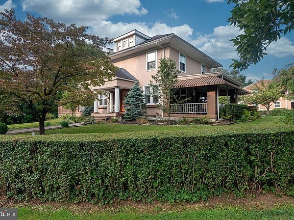 Wow! This Wyomissing beauty is sure to please! This stately home sits on a corner lot adjacent to the Fountain Park. Manicured hedges surround the home with walkways leading to the front and two covered patios. The side patio is 17X12 and enclosed with a railing and also features a ceiling fan for those hot days. The rear patio is 16x16 and outfitted with a retractable awning. There is also a 16x21 private deck on the left side of the home with 220v electric for that hot tub you've been wanting. Enter the home through the front 52" wide door into the living room area. The living room has a brick fireplace with pellet stove insert and leads into the dining room. There is also a bonus space off of the living room, currently being used as office and piano area. Also off of the living room is a sun room with french doors leading to the deck. The tile floor kitchen has exposed beams, a walk in pantry and plenty of cabinet and counter top space. Just off of the kitchen is the mud room with washer and dryer as well as a powder room. On the second floor are four bedrooms, two of which have access to their own private balconies. The third floor doesn't disappoint as it is also finished and can be used as another bedroom, craft room or other hobby. The seller has recently upgraded the heating system to a high efficiency natural gas boiler. For added peace of mind, the seller is offering a one year HSA home warranty with an acceptable agreement.