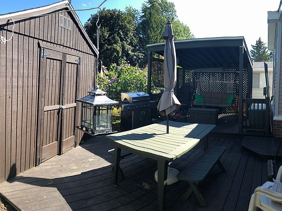Rock Oak is a wonderful community. This modular home has been impeccably maintained and upgraded throughout. Attached garage and carport, lovely yard w/two tiered deck and shed. The floor plan has many options, originally open concept kitchen w/great room currently used as a spacious dining room. Family room addition built in 2010 offers so much more living space. Note the beautiful wood molding details through out. Lot rent includes cable w/premium channels Garage makes the perfect "man cave", workshop w/50 amp electric subpanel, sump pump, storage and work bench. Truly a must see home!