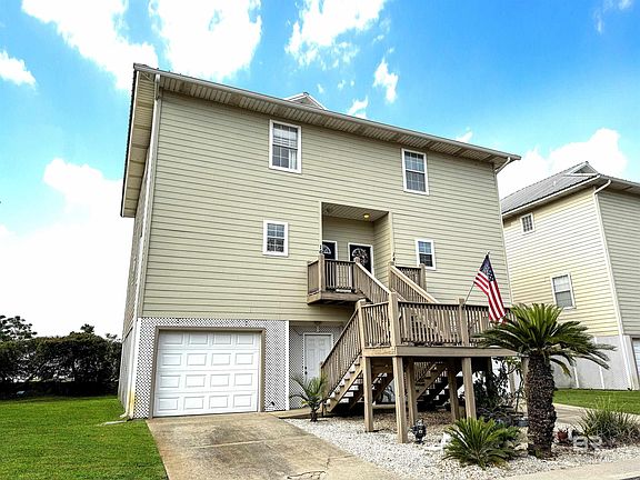 WELCOME HOME AND TO BAYSIDE LIFE! Tranquil views abound in this immaculate, comfortable home! Step in to the entry which opens to a informal dining area, an inviting kitchen, and a bright and spacious living room with balcony that looks out over Mobile Bay. The kitchen is truly lovely, boasting painted shaker cabinets, stainless steel appliances, and countertop seating for casual meals & social time with family & friends. The open floor plan truly makes it easy for everyone to stay engaged at any gathering. This home offers three bedrooms, all with walk-in closets and full baths. The oversized, airy Primary bedroom boasts vaulted ceilings and, like the living area, features crown moulding, and balcony with sliding glass doors. Primary bathroom features double vanities, a jetted tub and separate shower that have been beautifully updated. The balconies, both upstairs and down, are perfect for sipping your morning coffee or letting go of the day while luxuriating in cool breezes and the stunning sunsets Mobile Bay always offers. Luscious engineered hardwood floors throughout, and washer and dryer, are among the amenities offered in this home. (This home’s beautiful furnishings are also negotiable with purchase.) All appliances, separate AC upstairs and down, water heater, ceiling fans, sliders and hurricane shutters, and floors all installed in 2016. Garage has room for 3 cars and more. Sunset Bay Villas amenities include a pool with hot tub, private stocked pond, a lovely common area gazebo for grilling and a fantastic private pier on Mobile Bay. A short walk to The Waterfront restaurant, pier and boat launch, just minutes to I-10, the Causeway, schools, shopping and dining, what more could you ask for? It’s time to start enjoying your life in your own slice of paradise! Buyer to verify all information during due diligence.