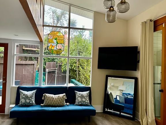 The Beautiful Two-Bedroom is generally rented as a fully furnished Airbnb Superhost rental. It's move-in ready with everything you will need from pots, pans, coffee maker, linens to a top-tier massage chair. New Full Kitchen and Master Bath. Rare opportunity to live in RUSTIC CANYON, Uplifters Ranch. This A.D.U. (additional dwelling unit) is situated on a beautiful tree-lined 1/4 acre lot & sun-dappled private road. The unit is up the hill and full of indoor/outdoor living space, showcasing the natural light, surrounding nature & located in a celebrity neighborhood boasting the best school district. The main floor includes kitchen & living room. The upstairs is the master bedroom and bath. This is the original home of Susan French & John Houlton, founders of Theatre 40, for theater enthusiasts. Parking is on a private road. It's like a vacation miles away, but is within proximity to both restaurants, cafes & shopping in Santa Monica and Venice. Only 2 blocks away from Rustic Canyon Park. If stairs or children are challenging for you this may not be the best place. The homeowner lives below with 2 small children and three dogs. 1 Year Lease. Includes all appliances. Refrigerator, Range, dishwasher, microwave, toaster oven, LG Washer Dryer. Note: Available as Airbnb at 30 Day Min. Prorated at $ 7,495 per month. Call for details if taking this route. 30 day + reservation available via Airbnb.