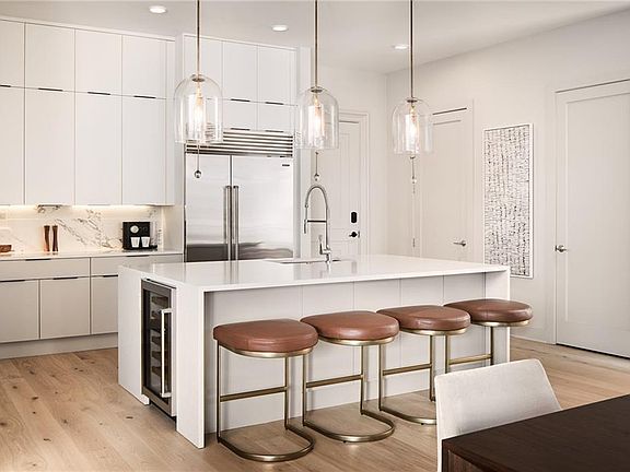 Surrounded by floor-to-ceiling windows and flooded with natural light, this stunning home beautifully merges sophistication with modern functionality. Thoughtfully designed to maximize this large space, this plan offers 3 complete bedroom suites and a beautiful den/home office with built-in shelving and a dual sided gas fireplace – the perfect additional living space to suit your personal needs! As well as an additional half bathroom, large coat closet, and laundry room with a stainless-steel sink and plenty of additional storage. The primary suite features a double vanity with dimmable light integrated mirrors, luxurious soaking tub, and a massive walk-in closet. Enjoy your morning coffee in the light-filled sunroom or curl up with a good book in front of the dual-sided fireplace that also opens to the main living area. The large open concept kitchen, equipped with Wolf and Subzero appliances including a 5 burner gas cooktop and wine fridge, opens to the large balcony with stunning views of the city, perfect for entertaining. Chic modern finishes include Porcelanosa tile, cabinets, 7” hardwood flooring, and soaring 12ft ceilings. Enjoy one-of-a-kind amenities at your new home at 40 West 12th, located in the heart of Midtown. Luxurious living with 3 upscale restaurants, 3 distinct bars, a hotel-service pool, as well as additional resident-exclusive amenities including an incredible all-seasons pool, health and wellness gym with yoga studio, outdoor residents’ living room, and 24 hr comprehensive concierge service.