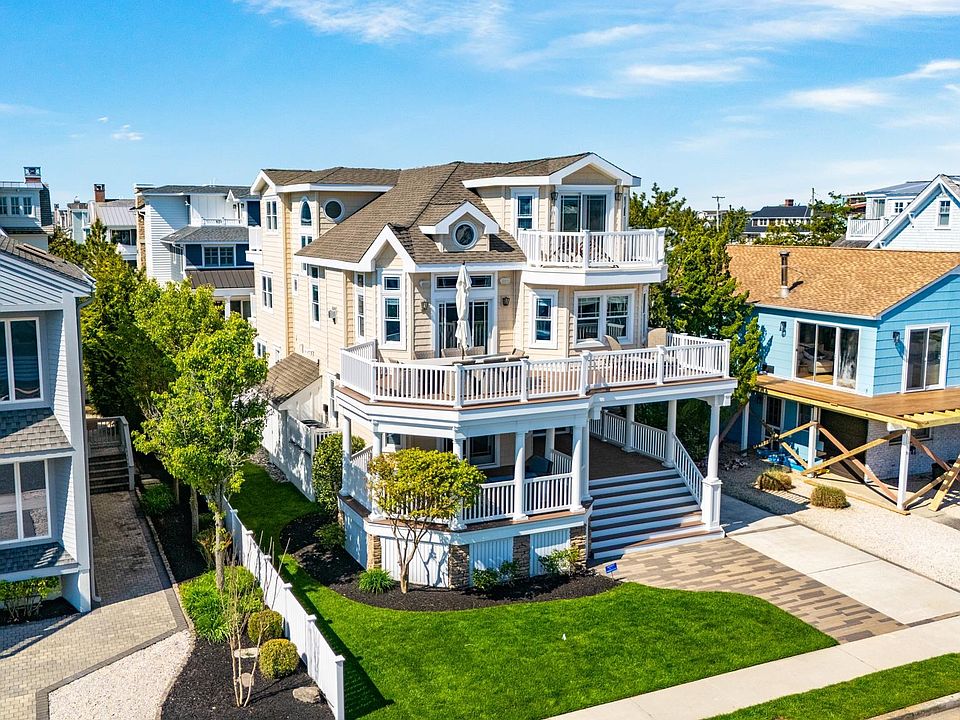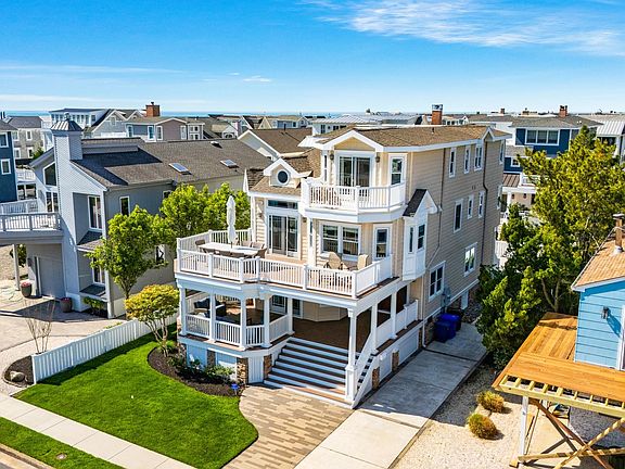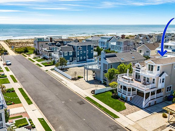 THIS BEACH BLOCK HOME IS NESTLED JUST 6TH FROM THE BEACH IN AVALON’S QUIET NORTH END! Being so close to the beach, you’ll be mesmerized by the beautiful views, the soothing sound of the breaking waves and the refreshing ocean breezes! This is a great street, featuring buried utility lines for enhanced aesthetics and it’s just a short stroll to Avalon’s sprawling Public Recreation between 8th and 12th Street, where you’ll find pickle ball, tennis & basketball courts, a playground, and ball fields! You’ll also enjoy an ocean view from 4 of the 6 decks, and of course young (and not so young) will appreciate the close proximity to the beach path. The home was recently renovated to enhance the modern flair, including shiplap accents, new flooring, new bathrooms, a new kitchen, top-shelf appliances including a Wolf range with a griddle top, a paneled Subzero refrigerator/freezer, a Subzero beverage fridge, a paneled Cove Dishwasher, and Fisher Paykel refrigerated drawers. The three-story Floor Plan features over 3,500 square feet of living area with 6 Bedrooms (5 with an attached bathroom), 6 Bathrooms, 2 Living Areas, 2 Laundry Areas, 6 decks (front & rear on each level), and a huge built-in storage area on the side of the home. There are 2 Bedrooms and 2 Bathrooms on each floor, and 5 of the Bedrooms have private access to a deck. There’s also 1st and 2nd Floor bar areas and 1st and 3rd Floor Laundry facilities. The First Floor offers a spacious & welcoming entry foyer, 2 bedrooms and 2 bathrooms, a Family Room and a Laundry Room. The bright & inviting Family Room spans the width of the rear of the home and is surrounded by windows. A sliding door provides convenient access to the southern-exposed pool and the new travertine patio area with a firepit. When the heat is on, you’ll appreciate the retractable awning that covers a portion of the patio! Back inside, the Family Room also features a wet bar with built-in cabinetry, a wine rack & refrigerated drawers, a ceiling fan and 5 speakers built into the ceiling. The Laundry Room has a door leading to the beach-side yard, which is perfect when coming/going to and from the beach & pool! The Second Floor offers 2 bedrooms and 2 bathrooms, and an impressive Great Room, which is wrapped in glass, thus creating a bright, inviting feel while also taking advantage of the refreshing ocean breezes. There’s a beautiful center island with seating, and favorite cold beverages for family & friends are always readily available in the huge Subzero refrigerator, and the two separate bar areas: one with a Subzero beverage fridge, the other with refrigerated drawers. Built-in speakers help set the mood and a gas fireplace tames the elements! The decks off the rear bedrooms lend an added benefit of allowing easy communication with those who are enjoying the pool & patio area. The Third Floor offers a private bedroom/bath suite in the front and in the rear of the home, and a laundry closet. Both suites have amazing ocean views and a private deck. The Master Suite even offers an ocean view from the bed, a large bathroom with a jetted tub, a spacious walk-in closet and built-in speakers. Additional Highlights include: off-street parking for multiple vehicles, a fenced rear yard, a Security System, new pool equipment, new sliding doors, a Mana Bloc Plumbing System (facilitates super-easy winterization of outdoor plumbing, and allows easy access to all supply lines),a landscape irrigation system, and Central Vac. Act now, as this property offers a highly desirable blend of attractive features that aren’t always readily available for you; specifically - - a home of this substance being sold with all of the furniture in “turn-key” condition, ready for your immediate enjoyment (this is not a rental property), combined with the ocean views, the quiet neighborhood, a southern exposed rear yard, tons of indoor & outdoor living space AND a renovated interior! Over $500,000 of renovation work was performed in 2022