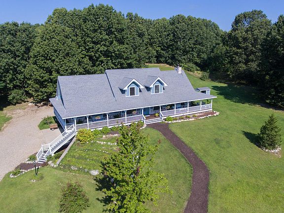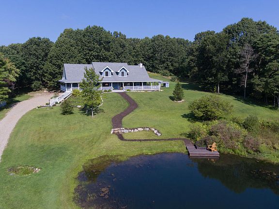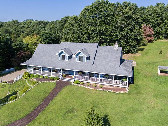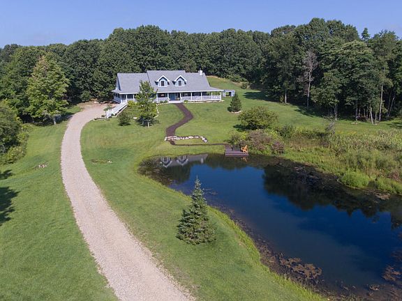 Perched on top of a hill, this home and property is a true wonder. The driveway winds its way around the peaceful pond (loaded with fish) and up to the home. You will want to sit on the wrap around porch and relax your troubles away. Upon entry, you will notice the vaulted ceiling and stone fireplace in the LR. This room is open to the eating area and enormous kitchen. The master suite boasts plenty of room, closet space and a jetted tub. New carpet upstairs will lead you to two large bedrooms wplenty of room for kids and guests. A full bath is also on the upper level. The walk out level is finished and was used for bedrooms and teenagers. A full bath and laundry are on this level as well. Pine Lakes Log Homes built this home and it is a true masterpiece. Call for a private showing.