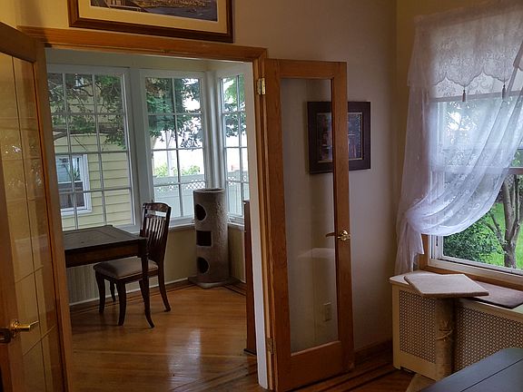 One family home in great condition on over-sized lot. This gorgeous Colonial has an open floor plan, two sun porches, a large backyard with beautiful landscaping and driveway for two cars. The first floor features wood floors throughout, cozy living room with wood burning fire place, spacious dining room, sun porch with beautiful French doors and custom windows, and a modern galley kitchen with granite counter tops. The second floor features spacious master bedroom with four windows, large second bedroom with a nice size sun porch, modern bathroom and pull down stairs for attic storage. The basement is full and unfinished, with gas furnace, newer water heater, washer and dryer. The back yard is landscaped with beautiful mature Willow Oak, Village Elm and English Yew trees, Boxwoods and Yew bushes. This property has a two car driveway and is located only two and a half blocks from the light rail station.