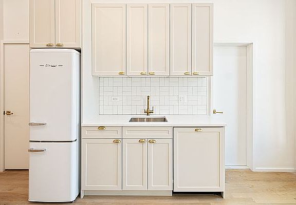 Beautifully Designed 1 Bed/1 Bath Loft with PRIVATE terrace right off Atlantic Ave! The fully renovated, smartly designed one-bedroom features an open, brand-new kitchen that includes light gray custom kitchen cabinetry, plenty of storage, integrated stainless-steel appliances, and a white retro fridge! The kitchen opens up into the large living and dining area spacious enough to fit a dining area or home office with recessed lighting and beautiful light fixtures throughout the apartment. There is a sizable laundry room with washer/dryer ready to use! On the other side of the living room you will find the bedroom that comfortably fits a king or queen sized bed with room for a dresser and ample custom built out closets! The apartment is cleverly curated with beautiful finishings, hardwood floor, large windows letting in natural light and 10' ceilings! The modern bathroom is also finished with brass fixtures, white terrazzo-style tile floors and a deep soaking bathtub. Plus a private backyard to entertain your guests, this apartment is a must see! The location: Near Whole Foods & Barclays Center Tons of bars, restaurants, cafes, shops, etc on Franklin Ave Just a few blocks from Prospect Park Easy access to the 2,3,4,5,B,D,N,Q and R trains along with a connection to the LIRR