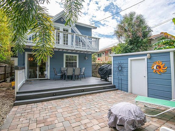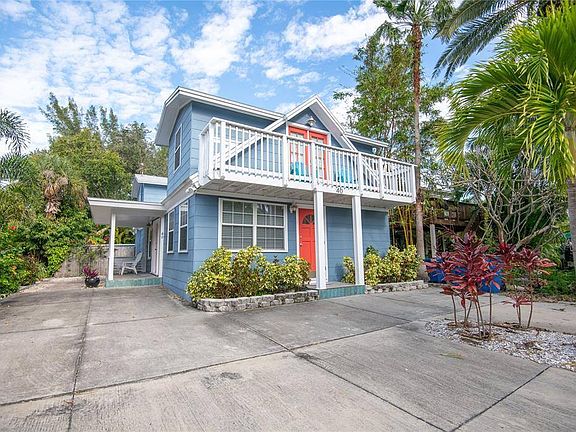 At the southernmost tip of Treasure Island lies eclectic Sunset Beach - which is, as locals know, the island's 'truest treasure.' Step back in time here to experience Old Florida Charm, where beach bungalows and cottages from the 40's, 50's and older still, proudly abound! This beautiful 1940's duplex stands as a proud testament to that yesteryear, while enjoying modern updates that provide the conveniences we have come to expect. After a long day at the beach, you will be delighted to be welcomed home here. Choose to live in one unit and rent the other; rent both and use as a second-home when so desired; or, take advantage of the best VACATION RENTAL market we have EVER seen and rent, Rent, RENT!!! Let's talk about the location! While this property is off the 'main drag,' (which in this case is two lanes, one going each way - hardly a main artery), it is almost equidistant from the pristine white sand of the beach and the warm waters of Blind Pass. Walk east or west about 800 steps and you can be either enjoying the beach or the bay! And while far enough away from the Maddening Crowd to relax and enjoy solitude, it is also close enough that you can be in the thick of things at Caddy's Beach Bar, which is just a smidge over ½ mile to the north. Indeed, there is no shortage of things to do within a very tight radius, from great restaurants and shops to the widely recognized world-class beaches of both St. Pete Beach and Treasure Island. Upon entering the front unit of 550 acsf, you will step into a bright and cozy open-plan living space with soaring ceiling heights and a spiral staircase to the sleeping quarters of the lovely loft! But though you are immediately enticed to ascend those stairs and see what awaits you above, let's stay for a moment with our feet on the ground. Look about! The great room includes a full-size kitchen with stainless steel range, microwave, refrigerator and granite countertops, including an ample breakfast bar for dining. On this floor there is also the newly remodeled full bathroom with walk-in shower. Okay! Now, ascend that enticing spiral staircase and check out the loft with its vaulted ceilings. Here there are accommodations for both a queen-sized bed and a twin. The room enjoys the bonus of a balcony that opens via French doors. The back unit is larger with a total air-conditioned square footage of 1,126 acsf. It too has grand ceiling heights, abundant bright windows and many interesting features, including original heart-pine flooring, ships lap; wood paneling; dental mouldings; and many other interesting original features, including a fireplace, which has been converted to gas. On the ground floor there is a large living room, the central feature of which is the aforementioned fireplace. Off of the main living area is a good-sized kitchen with a gas range, as well as a guest bedroom and full bath. Upstairs is an incredibly charming loft area that includes dollhouse-stye sleeping quarters with two twin beds nestled under the ceiling eaves. Passing through this area, you reach the primary ensuite bedroom with balcony overlooking the beautiful back garden. The bathroom here has been beautifully remodeled with a mixture of contemporary and eclectic wood and iron accent pieces that together create an Architectural Digest-worthy living space. 2020 income=$23,433 due to COVID restrictions. 2021 bookings to date =$38,861. 2020 Utilities/Taxes/Ins/Advertising = $29,296. Annual Gross Inc Est at $60K.