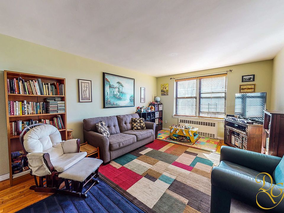 PLEASE NOTE BUILDING ADDRESS IS 40 89th STREET a/k/a 8901 Narrows Avenue (entrance on 89th Street) We invite you to this bright and sunny top floor one bedroom with unobstructed views, including views of the harbor. A coat closet is conveniently located in the foyer as you the enter this space, however there are 2 additional hall closets provided in this apartment that provide for additional storage. Windowed kitchen accommodates a sitting area however there is a separate dining section situated outside the generous sized living room. Ample sized bedroom is equipped with adequate storage space provided from the double door closet. Dual windows in bedroom allow for good light and air flow. Hardwood floors throughout. Updated windowed tile bathroom complete this space. This elevator building offers many amenities including an on-site super, laundry facility, storage, and bike room. Cats are permitted. Security cameras throughout allows for 24-hour security video surveillance. Building has an attached garage with indoor parking, however there is a wait list. Building is located less than one block from the beautiful Shore Road promenade featuring parks, the Narrows Botanical Gardens, tennis courts, bike and running path. Conveniently located near the local and express bus to Manhattan, short distance to the train and NYC Ferry, and all major highways including entrance to the Belt Parkway, BQE, and Verrazano Bridge. Nearby you will find an abundance of shops and dining choices. Enjoy all the conveniences this vibrant Bay Ridge community has to offer.