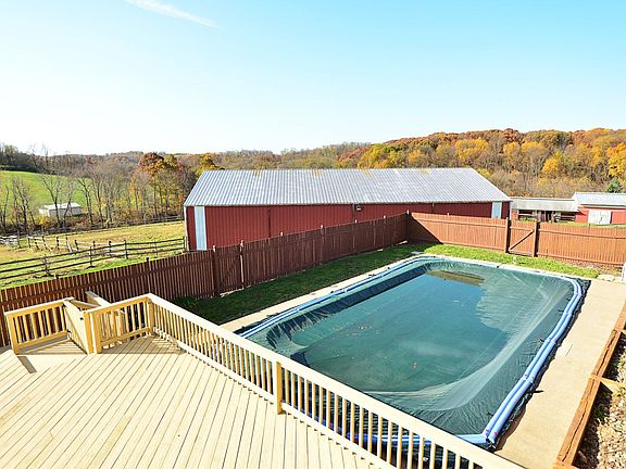 Oil & Gas Rights NOT Included & Already in Production! Sprawling 42 Acre Horse Farm and Spacious Ranch Home w/ 5,000 Sq. Ft. of Finished Living Space, 3 Horse Paddocks, 5 Stalls & Newer Barn Addition w/ Indoor Riding Arena, Pole Barn/Building, Pastures w/ Spring Tanks & Run-Ins, 2nd Barn w/ Stalls & additional home site! One level living -- One Level Living w/ 4 Bedrooms & 3 Baths, Mother In-Law Suite on LL Complete w/ Full Kitchen, Covered / Screened-In Deck, In-ground Pool, 2 Car Attached Garage & More!