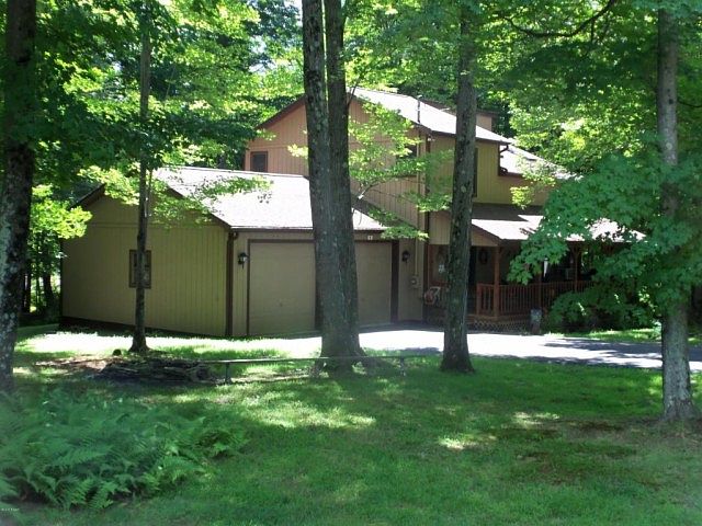 WOODY AMBIENCE AND A BREEZY Location On a Quiet Street with SERENITY The Large porch says WELCOME! SIT and stay AWHILE! The house features 3 bedrooms 2 baths Living w/gas fireplace KITCHEN w/BREAKFAST BAR + Dining Room w/ sliding GLASS Doors to the 4 Season Heated Room + paved driveway + 2 car GARAGE. YES a Large Shed for the extra toys. All of this situated on a lovely 0.41 property in the Amenity Filled Community Indian Rocks at Lake Wallenpaupack If VALUE IS IMPORTANT! call us for an appt to
