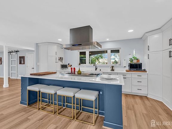 Welcome to this beautifully renovated 3-bedroom, 2-bathroom ranch, offering a spacious open floor plan, modern finishes and plenty of natural lighting. This home is truly move-in ready with high-end upgrades throughout. The interior features newly finished flooring throughout for a fresh, modern feel. A gourmet kitchen with marble countertops, farmhouse sink, walk-in pantry, an oversized built-in Frigidaire, and a Blue Star stove. Expanded custom en suite with home office space & primary bath featuring double sink vanity and marble finishes. Exterior features include a private back yard with a new patio and an expansive 20x30 deck to enjoy outdoor living! This home combines style, comfort, & functionality. Close to Matawan train station, GS Parkway; It offers a convenient commute to NYC!