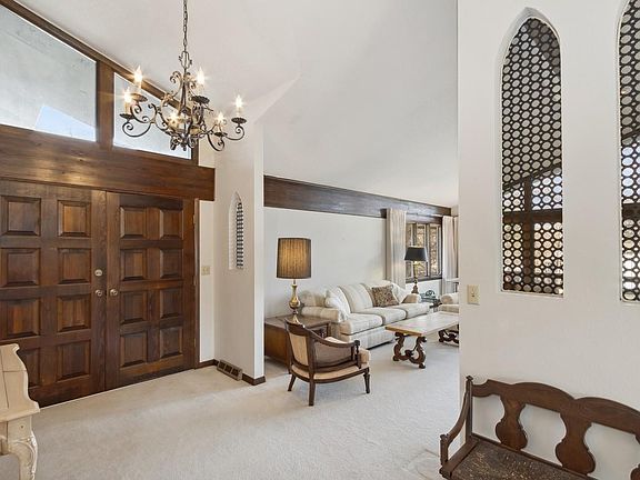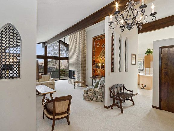 Sited on over half-an-acre and perched on a hill, this multilevel Midcentury Modern offers vintage details and loads of potential. Located moments from UIHC and Iowa City Amenities. A large living room with vaulted ceilings, floor-to-ceiling windows, and beautiful fireplace set the tone and tenor of this home. A formal dining area just off the kitchen makes entertaining a must. The spacious kitchen with plentiful cabinetry has a breakfast area and pantry. The upper level offers three bedrooms, including a well-sized primary suite. A guest full bath is also located on the upper level. En route to the lower level, you'll find access to a two-car attached garage, a laundry room, and a versatile unfinished workshop space. The walkout lower level includes a spacious family room, a fourth bedroom, and another full guest bathroom. Enjoy the beauty of the outdoors from the expansive wrap-around deck, accessible from the living room, dining area, and kitchen, offering an ideal space for relaxation and entertainment. Property is held in an estate and is being sold as-is. Any and all offers will be reviewed by the sellers at 3:00 PM CST on Sunday, March 17, 2024, and the sellers will respond by 5:00 PM CST on Sunday, March 17, 2024. Offers will continue to be presented/reviewed/responded to until the sellers have a firm/sale pending contract. Please note the fire in the fireplaces has been digitally added to the photos. Fireplaces are being sold as-is.