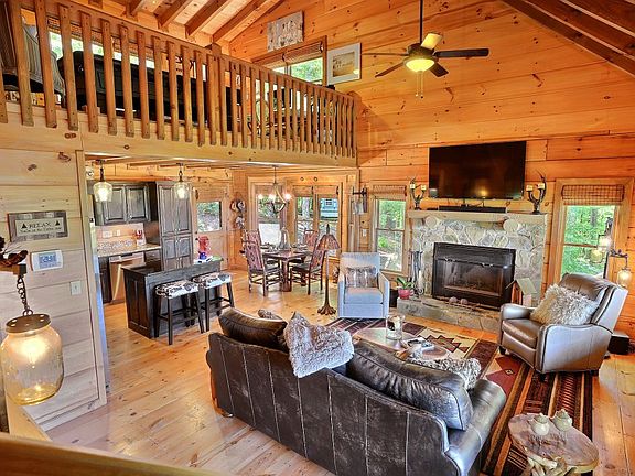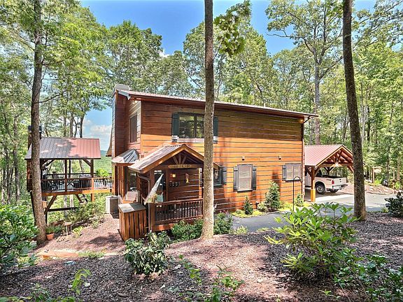 Embrace the serenity & escape to the mountains with this private, wooded lot that holds a home with a year-round mountain view from all 3 levels! Sitting on 1.52 acres w/ an adtn?l buildable 1.6 acre lot available, this unique log siding cabin with an open floor plan has cathedral ceilings, high-end SS kitchen appliances, as well as granite counter tops. Entertainment is endless. How about the loft area designed for the kids to play or an office for the parents? The wrap around deck with plenty of outdoor seating around the stone FP could be the perfect setup for a football game watch party! Or the terrace level having a finished basement with living area & partial kitchen that flows into a beautiful outdoor stone patio with plenty of space for a cookout, smore around the firepit, & the perfect mountain view. Located only minutes from DT Blue Ridge for the entertainment to continue or hiking trails just around the corner!