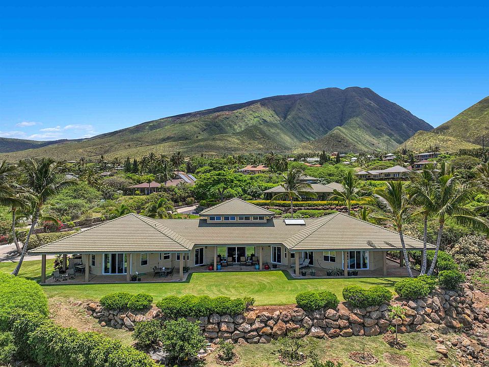 Located in the sought-after Launiupoko neighborhood south of Lahaina, this spacious 4-bedroom, 3.5-bathroom home is the LOWEST priced main home and boasts panoramic views of the ocean, neighboring islands, and the West Maui mountains. Nestled on just over an acre in the foothills, the residence offers 3,564 sq. ft. of living space, including a loft. Its bright and open floor plan, perfect for entertaining, is complemented by a wraparound covered lanai. Additionally, a detached 3-car garage, featuring painted walls and epoxy floors, adds to its appeal. The surrounding property is a tropical paradise, adorned with citrus trees, bananas, papayas, pineapples, and ornamental flowers. Inside, upgrades made since 2017 further enhance the home's ambiance. Highlights include a 42" Sapele front door with breezy sidelights, 24" x 24" porcelain tiles, cherry cabinetry in the kitchen and bathrooms with granite counters, and premium appliances such as a Sub Zero fridge and Thermador oven, cooktop, and dishwasher. Ample closet storage and efficient ceiling fans are available in every bedroom. The exterior was refined in 2019 with a new stucco finish, woodgrain garage doors with battery backup openers, a uniquely designed lava-themed mailbox, and updated lighting fixtures for both the house and the garage. Pictures do not do this property justice, must be seen to be truly appreciated. The home is offered partially furnished.