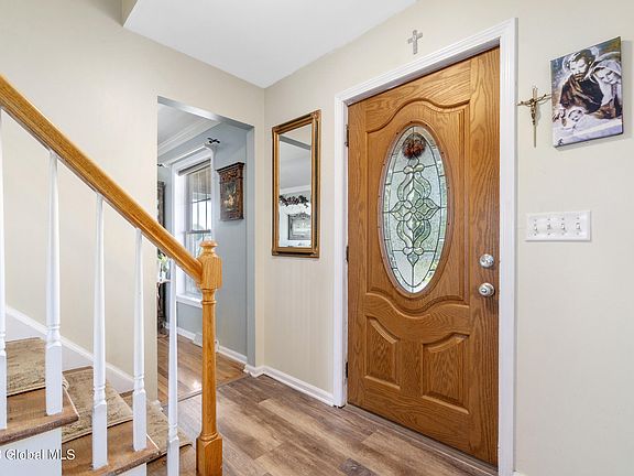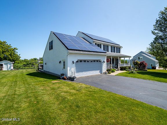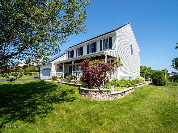 Welcome home to this beautifully updated 4 BR, 2.5 BA colonial in North Colonie school district! Featuring a stunning updated kitchen with granite counters & SS appliances. Entertain guests in the formal dining room & relax in the spacious living room. Family room with gas fireplace offers a cozy retreat. Step outside to the brand new trex deck & enjoy the inground pool with tons of sun exposure.Upstairs offers updated full bath, 4 generous-sized bedrooms, including primary bed with walk-in closet & ensuite. Updates include new roof '22 with solar panels to cut costs, new furnace & central air, water heater '17, pool liner & pump, sprinkler system, and more! Finished basement for extra living space or storage. Quiet neighborhood and close to Latham Ridge School. Move right in & enjoy!