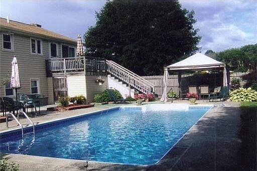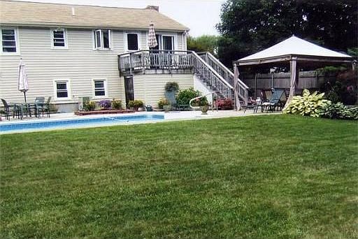 Meticulous 3 Bedroom Raised Ranch with deck off dining area leading down to patio and inground pool. Beautifully manicured lawn. Cul-de -sac area. Lower level has large family room and den or 4th bedroom w fireplace. Laundry area and utility room. one stall garage. Must see home.