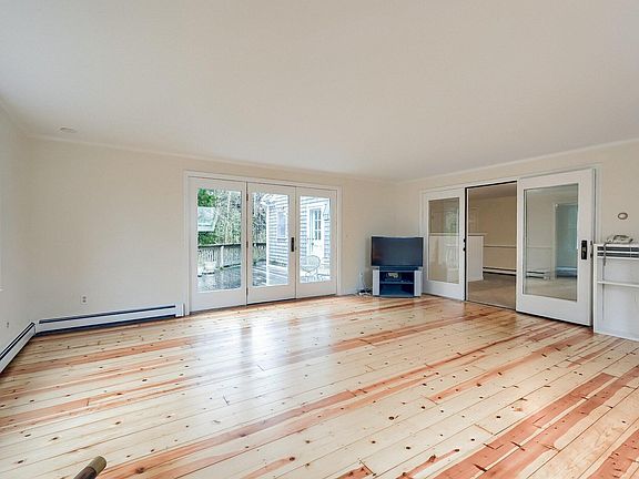 EAST ORLEANS - BACK ON MARKET READY FOR SUMMER! Modern Cape style 3B / 3BA home set back on private .94 acre lot. Less than .2 miles to Meeting House Pond - town launch w/ dock, moorings & access to open water. HUGE great room with fresh paint and refinished wide plank yellow pine flooring opens to large deck overlooking secluded backyard with mature perennial gardens. First floor includes bed & full bath with private entrance. The 2nd floor includes 2 bedrooms with refinished wide plank wood flooring & fresh paint. Primary bedroom with walls of closet space & walk-in storage. 3rd bedroom with lovely view of backyard & 2 double closets. Shared walk-thru bath, skylight, jacuzzi tub & shower. Professionally renovated lower level. includes living area, office space, full bath and walkout. Additional features: Professionally updated kitchen & baths, new carpeting, wood floors refinished, fresh paint throughout, fireplace, whole house generator, Ansel Adams style darkroom, 2 car garage & plenty of parking. Nauset Beach is less than a 5 minute drive away. Restaurants & shopping close by. Title V approved. New double walled oil tank installed. Buyer's agent verify information.