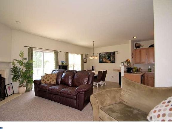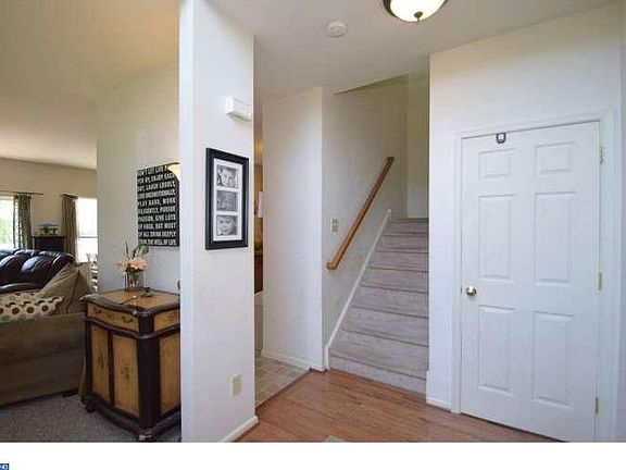 Lovely end unit town home in desirable community of Westport Farms Low maintenance interior and exterior makes this home perfect in many ways. Open 2 story foyer hardwood floors and balcony welcomes you to the home. Nine foot ceilings throughout the first floor. The Powder room, coat closet and den/office or additional bedroom are to the right as you walk in. The well equipped eat-in-kitchen offers plenty of storage in the upgraded maple cabinetry and pantry and countertops. Open floor plan leads into living room complete with gas fireplace and neutral carpet. Sliders lead to trex deck with access to the over sized backyard with farmland views. Second floor is complete with full hall bath , laundry room and linen closet. Main bedroom offers huge sitting area suited for small office or entertainment nook. The full master bath has soaking tub, stall shower and double bowl sinks. The basement is waiting for your finishing touches or just for great storage area. This home is located in a fantastic development with sidewalks, walking trails, close to schools, shopping and major routes. Make your appointment today!