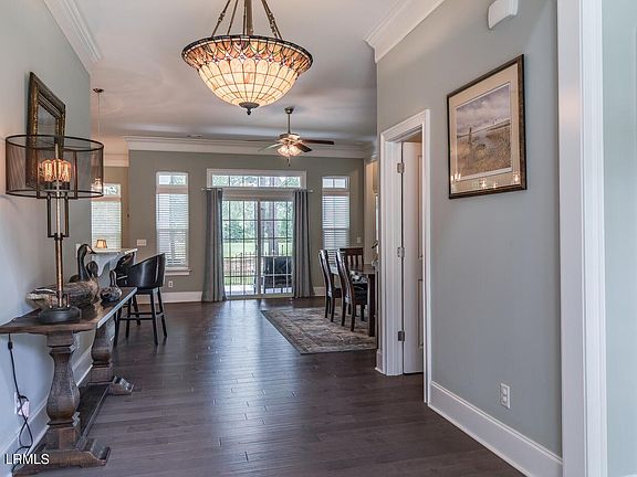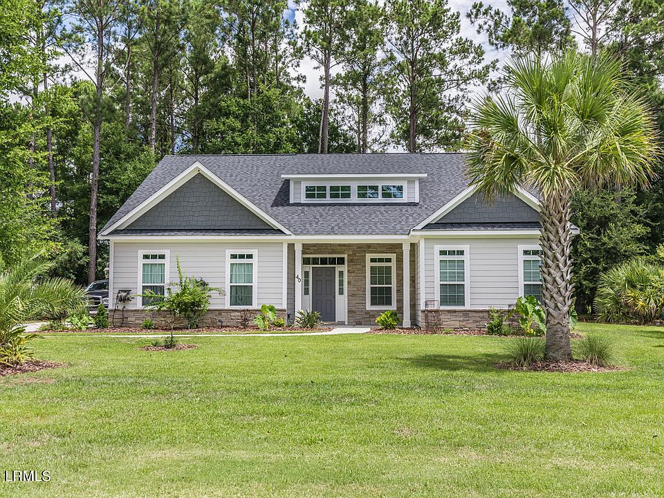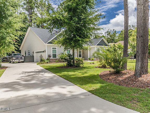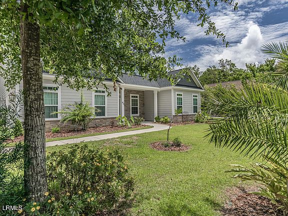 Custom home designed for golf course views. Full Hardi Plank and stone exterior with side entry garage. Very open concept design with entry foyer, great room, kitchen, dining and gathering room. Ten foot ceilings. Transom windows bring natural light across the entire living area decorated with deep crown molding. Granite gleams in kitchens and baths. Handscraped wood floors through out all living space. Bedroom suites are separated between Front and rear wings of the home. The owners suite takes in golf views. Stunning walk in tile shower in owners bath. Spacious porch. Just steps from the amenity center and salt water pool. Wonderful walking, biking and outdoor life in this Lady's Island community.