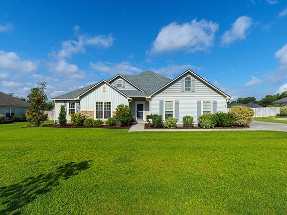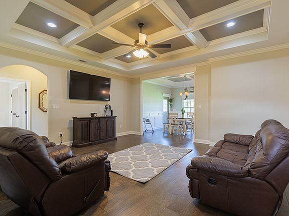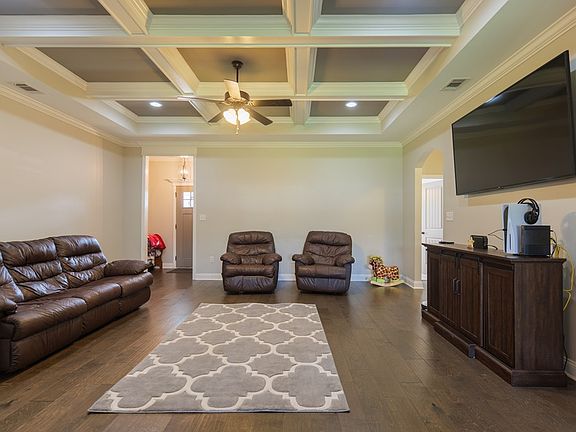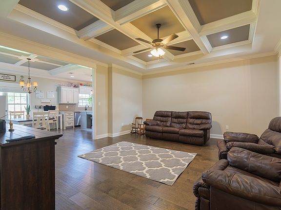 BEAUTIFUL 4BR/2BA HOME ON A HALF ACRE LOT IN PATRIOT'S POINT SUBDIVISION! Located only 10 minutes North of Moody AFB this home has so much to offer! Open concept kitchen, dining and living room with hardwood flooring. Living room and master bedroom both feature beautiful, coffered ceilings. Kitchen is complete with stainless steel appliances, custom cabinetry, custom backsplash, granite countertops and a large island. The master bathroom has tile flooring, a double vanity with granite countertops, walk-in tiled shower, and a huge walk-in closet. Seamless gutters installed in January 2022! Large screened in porch is perfect for entertaining and the backyard is fully fenced! Don't wait to see this one, it won't last long!