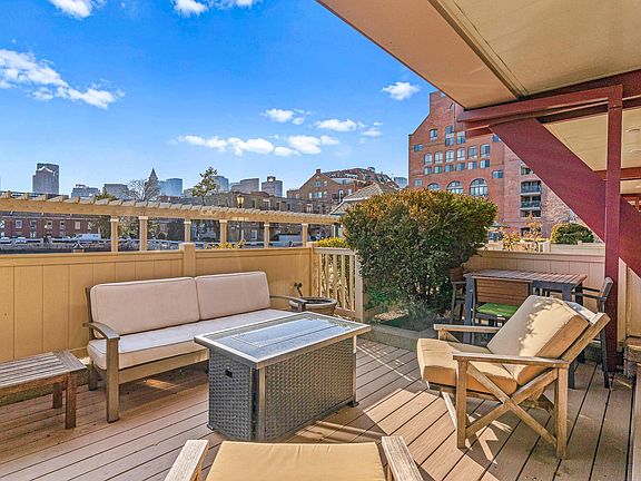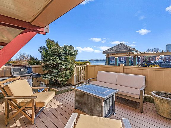 A rare gem, south facing Townhome at harbor's edge with private entrance, two garage parking, and entertaining size decks. Spacious Living and Dining area with high ceilings, wood-burning fireplace, and walkout outdoor space with stunning harbor and city views. Eat-in kitchen with water views, breakfast nook, custom cabinetry, granite countertops, and high-end appliances. Large master suite with multiple closets, private terrace, floor-to-ceiling windows and stunning Harbor and City views. Ensuite master with custom tile work, updated vanity and walk-in shower. Guest bedroom with harbor views and ensuite bath. Hardwood floors, deeded storage, and washer/dryer. Two Garage Parking, Guest Parking and Marina Slip available. Burroughs Wharf has 24-hour Concierge, a marina, water shuttle, and beautiful landscaping with a water fountain. Next to the North End, Seaport District, Greenway, Faneuil Hall, North Station, South Station, Downtown Boston, TD Garden and all major transportation points Rent Fee Includes: Water, Sewerage Disposal, Refuse Removal, Snow Removal, Grounds Maintenance, Extra Storage, Parking